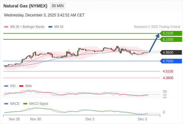 备选策略: 向下跌破 4.7000 ,将带来继续下跌的趋势,目标位为 4.5100 然后为 4.3900 。