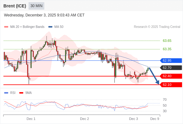 交易策略: 在 62.95 之下,看跌,目标价位为 62.40 ,然后为 62.10 。